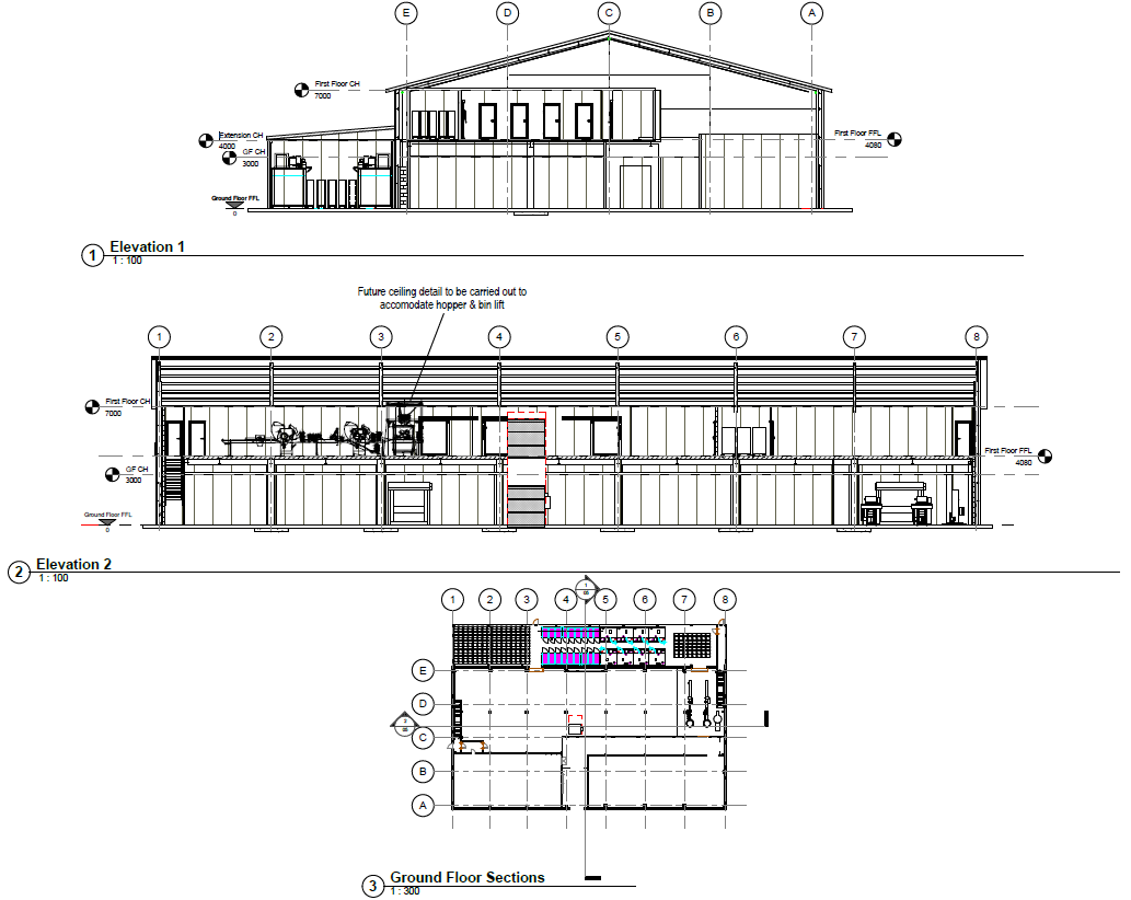 Detailed Design: We usually start here when a project doesn’t require planning permission for a ground up build or extension, or once planning permission has been secured. Whether your project is to build a new food factory from the ground up, fit out current space you have in your premises, or transform a new unit into a food production facility, detailed construction drawings are now required. This is crucial to ensure that every detail is taken care of and your finished factory will meet your requirements. This is a collaborative process, where our design team work alongside you over a period of 6-8 weeks to bring your vision to life. At the end of this phase, you will be presented with a full set of detailed construction drawings alongside a comprehensive scope of works and fixed proposal for the build and fit-out phases. This detailed design pack is yours to share if you wish to get alternative quotes.